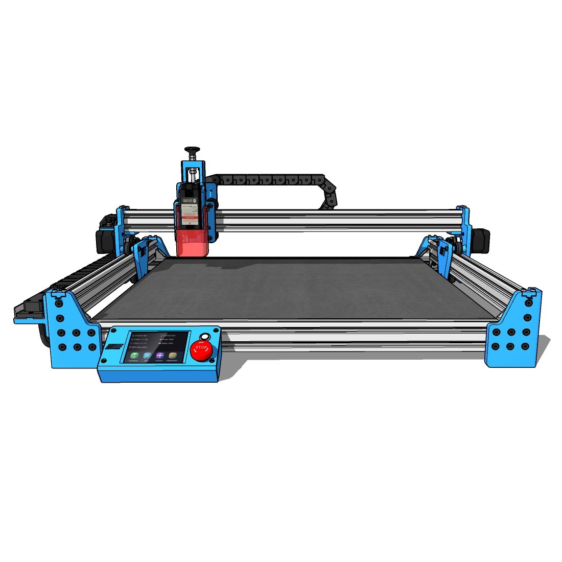• Scalable Work Area: The modular design allows you to easily increase the machine’s size simply by swapping the aluminum profiles and belts for longer ones.